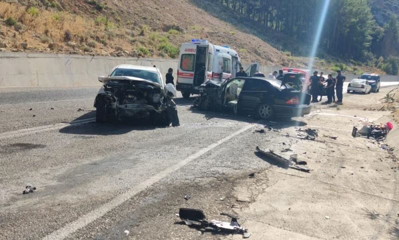 Hüseyin Salmaz'ın kullandığı 07 BAT 140 plakalı otomobille karşı yönden gelen Mustafa Öksüz yönetimindeki 07 AUL 02 plakalı otomobil, Yalnız Mahallesi'nde çarpıştı.