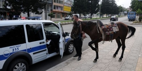görevini yapan polis ekipleri, caddede at üstünde gezen Adem Yeniçoban`ı