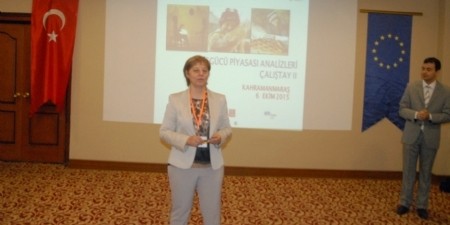 Daha sonra kürsüye gelen İSKEP İstihdam Uzmanı Nurgül Öğüt, Kahramanmaraş İş Piyasası Analiz Raporunu açıklayarak bilgiler aktardı.