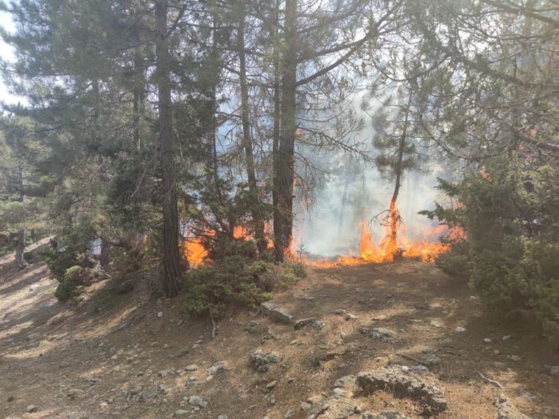 Yangına, Orman Bölge Müdürlüğüne bağlı 2 helikopter, 3 uçak, çok sayıda arazöz ve personelle müdahale edildi.