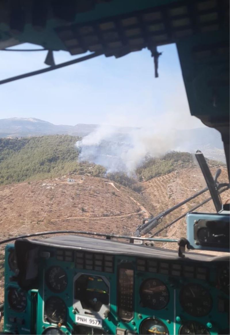 Alevlere havadan ve karadan müdahale eden ekipler, yangını kontrol altına aldı.