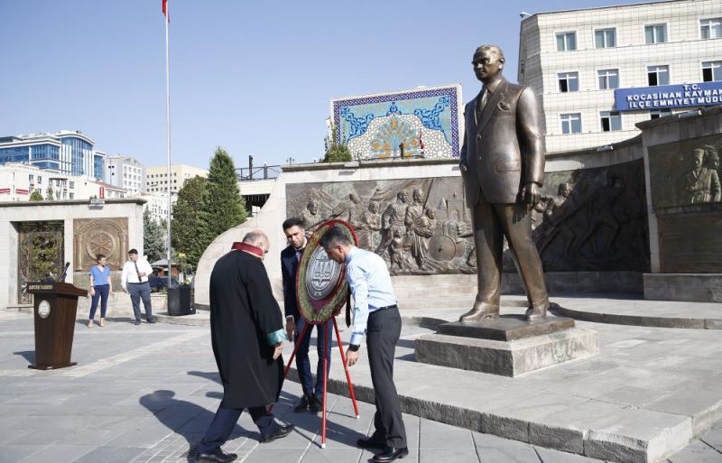 Cumhuriyet Meydanı'nda düzenlenen törende, saygı duruşunda bulunuldu, İstiklal Marşı okundu ve Baro Başkanı Ali Köse Atatürk Anıtı'na çelenk sundu.
