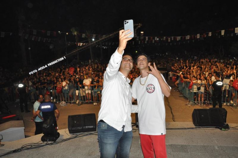 Taşucu Mahallesinde düzenlenen konserde sevilen parçalarını seslendiren Norm Ender, Silifke Belediye Başkanı Sadık Altunok'un elinden yoğurt yedi.